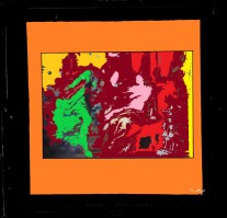 "Indianischer Akt" 1991. Acryl auf Pappe. 40x59 cm.