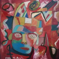 "Der freundliche Kobold" 1992. Mischtechnik auf Pappe. 79x75 cm.
