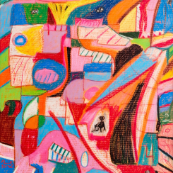 "Im Garten" 1992. Ölpastell und Acryl auf Pappe. 85x79 cm.